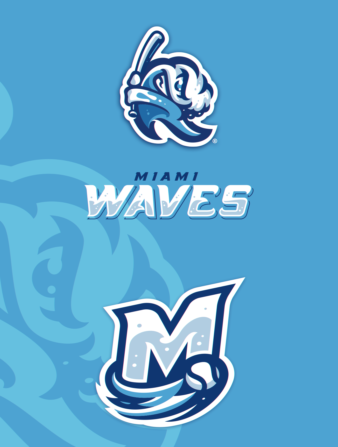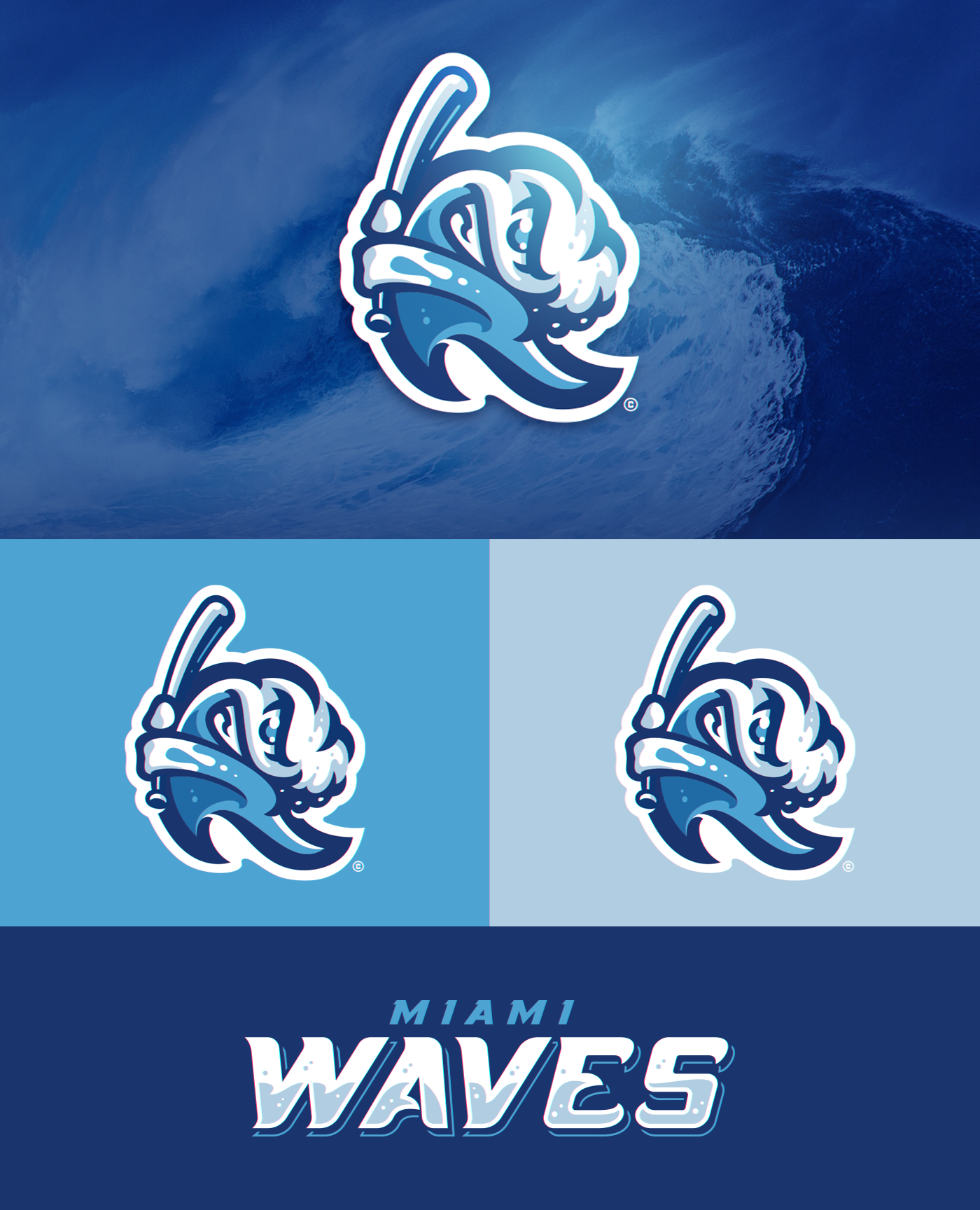 A client approached me for a logo in a style similar to a previous design, this time for their Miami baseball team. I created a wave mascot swinging a bat in a dynamic stance, with flowing lines and an ocean-inspired palette that conveys energy and vibrancy.