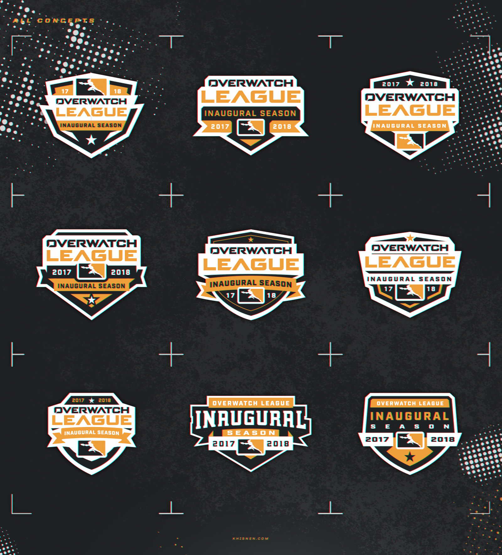 The goal was to design a logo that could seamlessly merge with Overwatch's existing branding using inspiration from sports leagues like the NFL, MLB, and NBA.